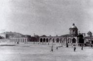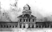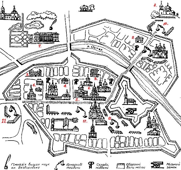 Кам’яна будівля міського Магістрату Ніжина, була споруджена у 1771 р. за проектом А. Квасова, на місці колишньої дерев’яної будівлі постраждалої від пожежі. Ніжинський магістрат був своєрідним типом будівлі міської ратуші кінця XVIII–початку XIX ст.: цегляної, двоповерхової, з восьмикутним дерев'яним «бельведером» (баштою з годинником). Будинок магістрату за структурою, був вирішений у стильових формах класицизму, складався з центрального двоповерхового корпусу і прилеглих до нього обабіч одноповерхових торгових рядів. З ряду причин будівля протягом кількох десятиліть стала аварійною. Розпорядженням Міської Думи було прийнято рішення про остаточний демонтаж центральної частини Магістратського корпусу, який був завершений у 1849 р.