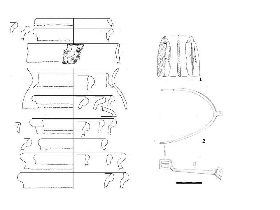 During the excavation in 2014 the chronology of the cultural heritage was rectified (Fig. 28). It is possible to define 2 horizons that correspond to two periods of cultural heritage. The first horizon includes the material of the Post-Mongolian era. They are mostly fragments of ovenware, remarkable for its specific massivity of nimbuses and date back to the 2nd half of the 13th-15th century.